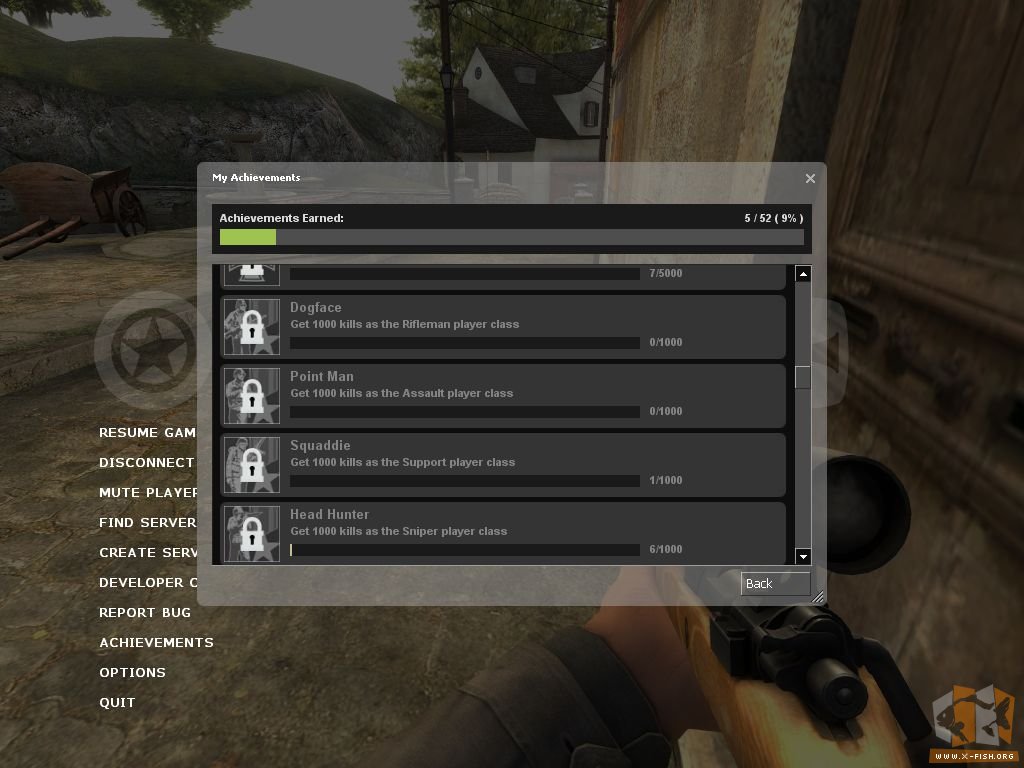 Das Archievement-System: 52 Aufgaben bzw. »Killsammlungen« welche erfüllt sein wollen. Die ersten 5 hatte ich binnen weniger Stunden beisamen (ca. 2 Stunden). So zum Beispiel 100 Flag-Captures, ein Rundengewinn bedeutender Flag-Capture, das Verhindern eines den Rundengewinn bedeutenden Flag-Captures, das Ausschalten eines feindlichen Snipers oder Machinegunners über eine Distanz von 100 ft mit eine Rakete – alles kein Problem.