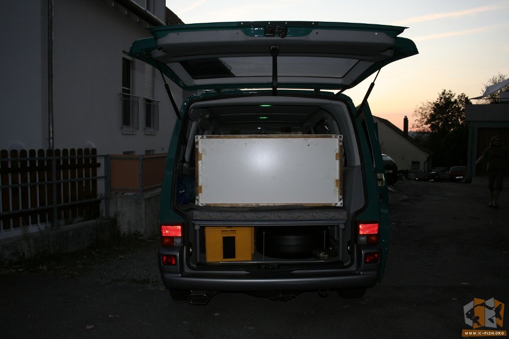 Nun denn, wiederum etwa zwei Stunden nach der Abfahrt in Sonthofen (abzüglich einer kleinen Pause bei McDonald's und dem bereits genannten Tankstopp) ging es ans Ausladen des Spinds.
