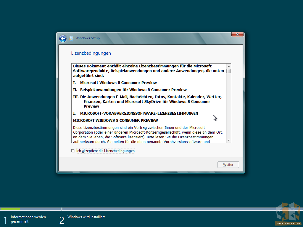 Auch altbekannt: Man muss den Lizenzbestimmungen zustimmen, ansonsten geht es mit der Installation nicht weiter.