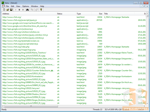 Natürlich habe ich »Xenu's Link Sleuth« sofort ausführen lassen, schließlich wollte ich meine Website mal wieder überprüfen lassen – und diesen Beitrag hier mit ein paar Screenshots einer tatsächlich durchgeführten Überprüfung versehen.