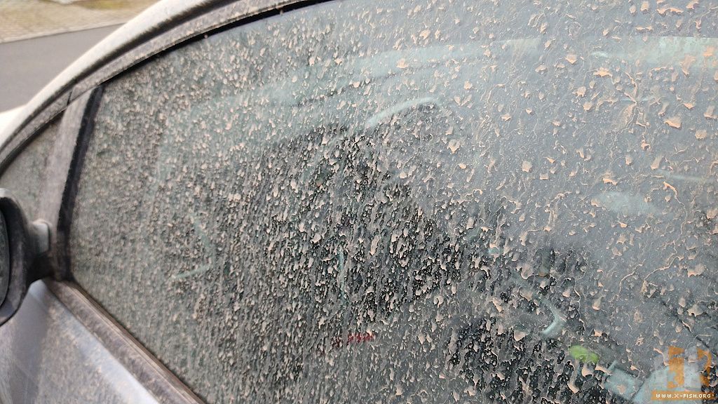 Die Windschutzscheibe sieht nicht besser aus. Sitzt man im Fahrzeug fühlt man sich beinahe wie von Milchglasscheiben umgeben. Kann ja sein das südlich der Alpen gelegene Länder dies öfters mal in einem solchen Ausmaß erleben dürfen. Für Süddeutschland ist das wirklich in dieser Dimension gänzlich neu.